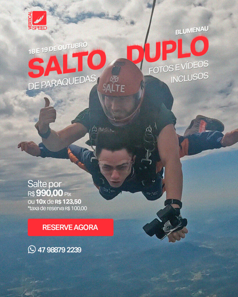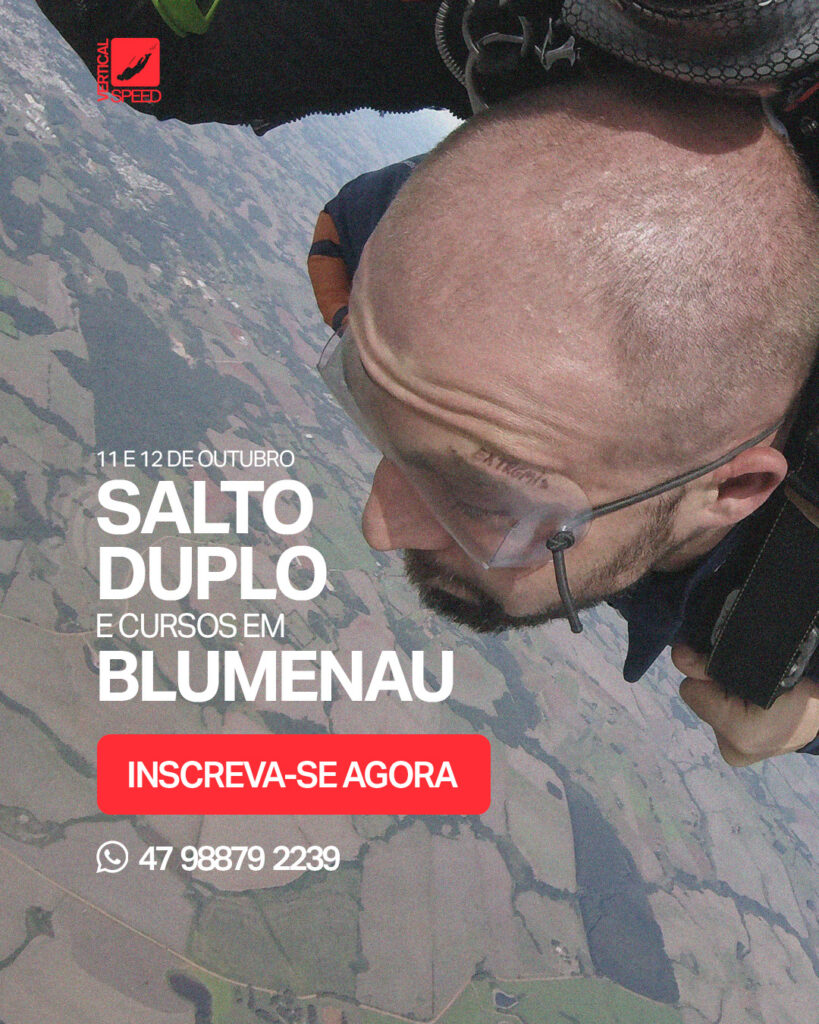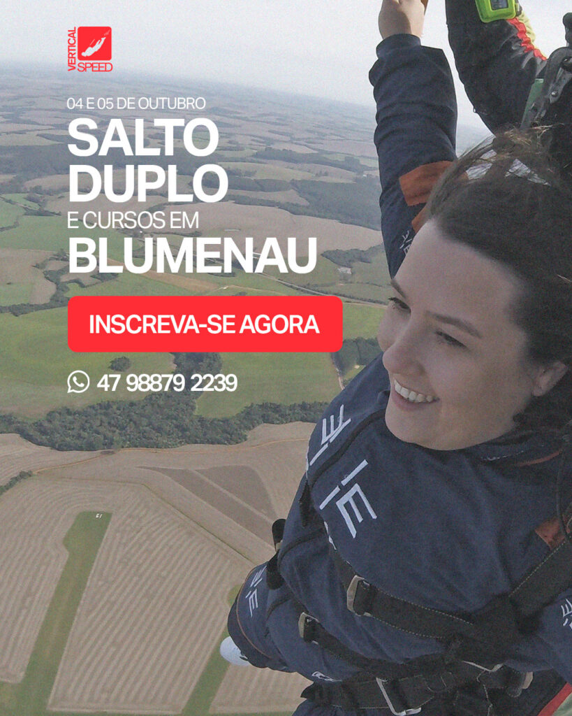 Anúncio para divulgar os saltos e cursos na data em Blumenau.