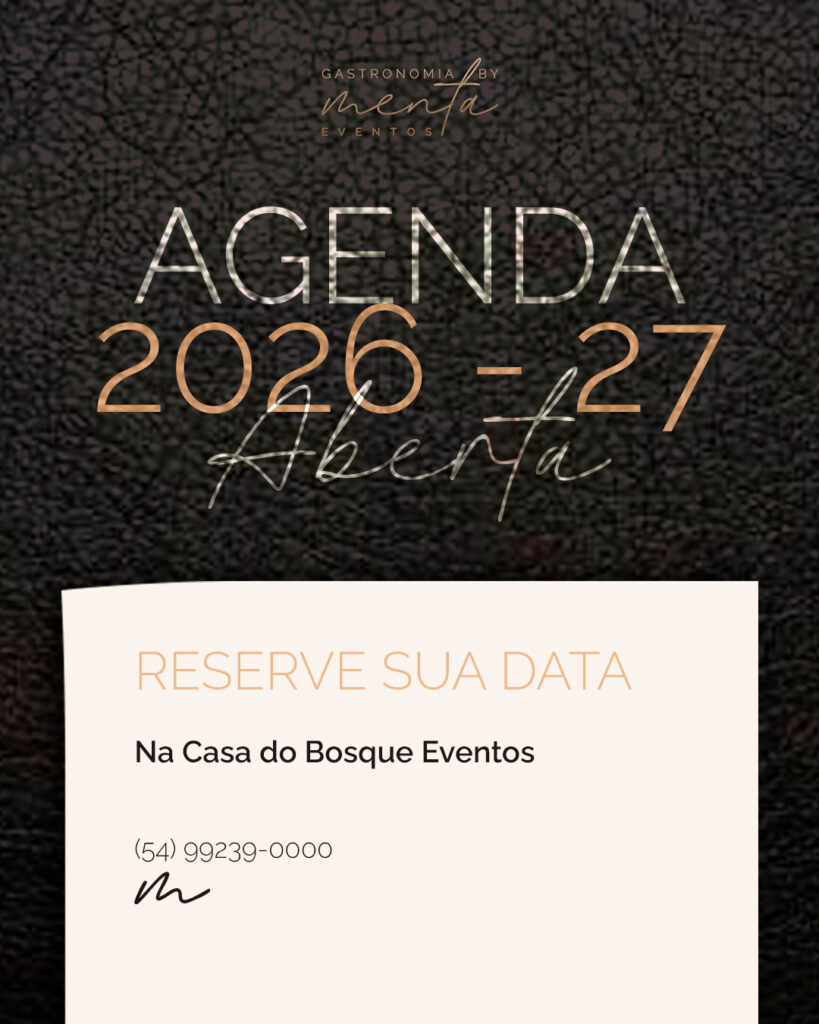 Divulgação da disponibilidade de datas para reservas de eventos de 2026 a 2027.