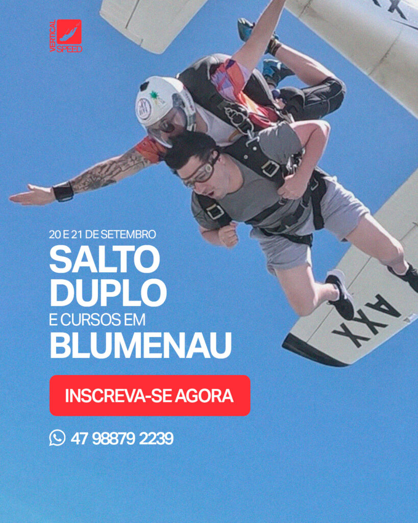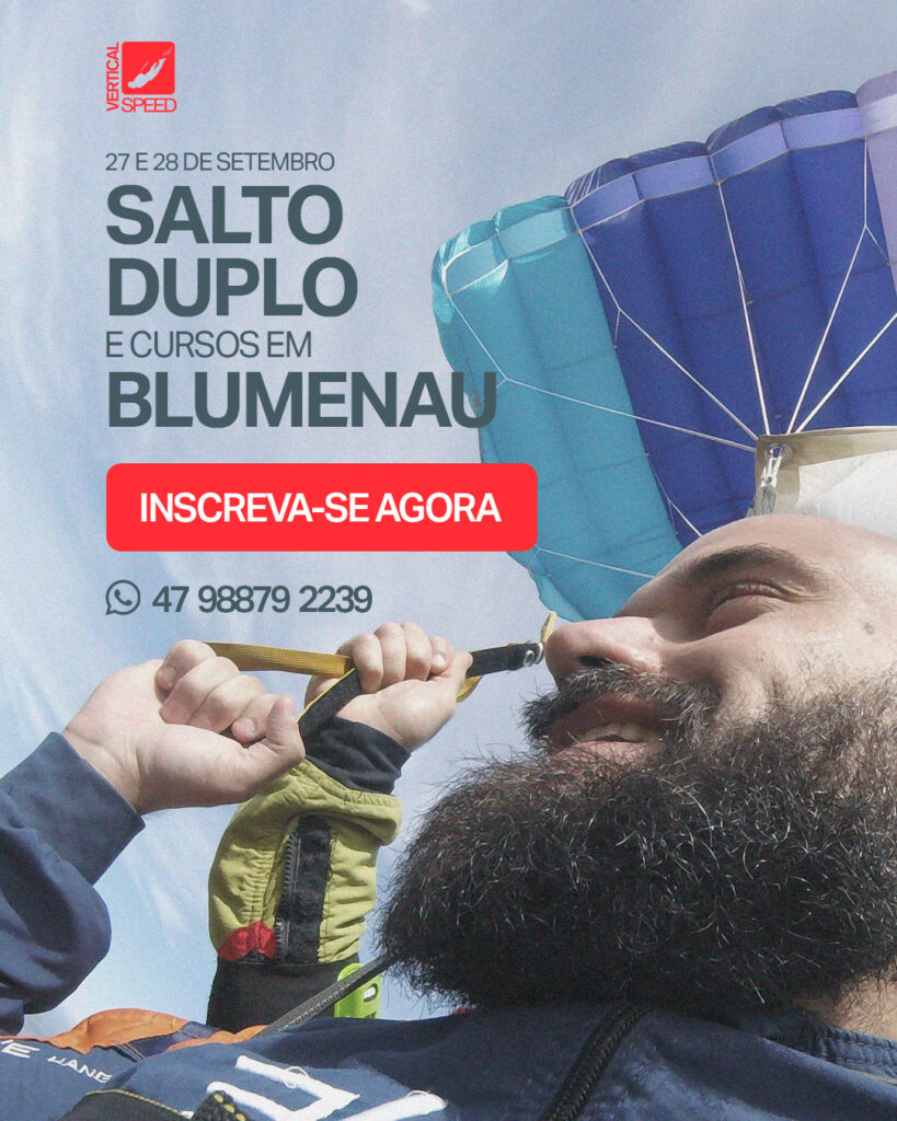 Anúncio para divulgar os saltos e cursos na data em Blumenau.