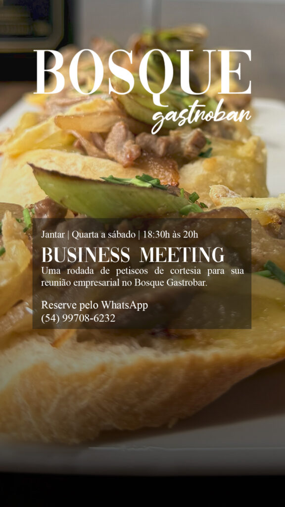 Anúncio para fomentar o jantar divulgando petiscos de cortesia para reservas de reuniões empresariais no Bosque Gastrobar.