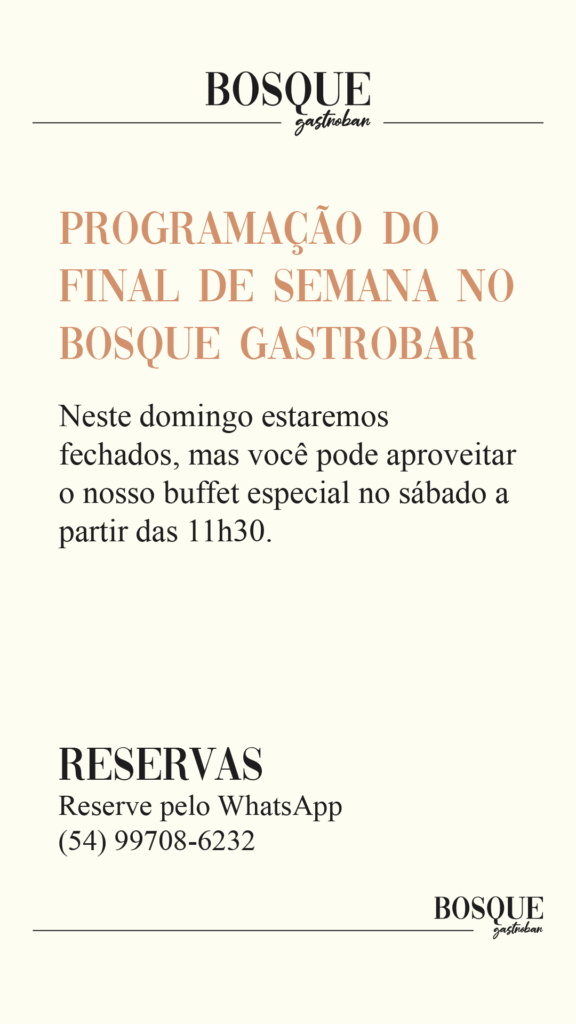 Avisos para stories informando a programação do final de semana, aproveitando para gerar reservas.