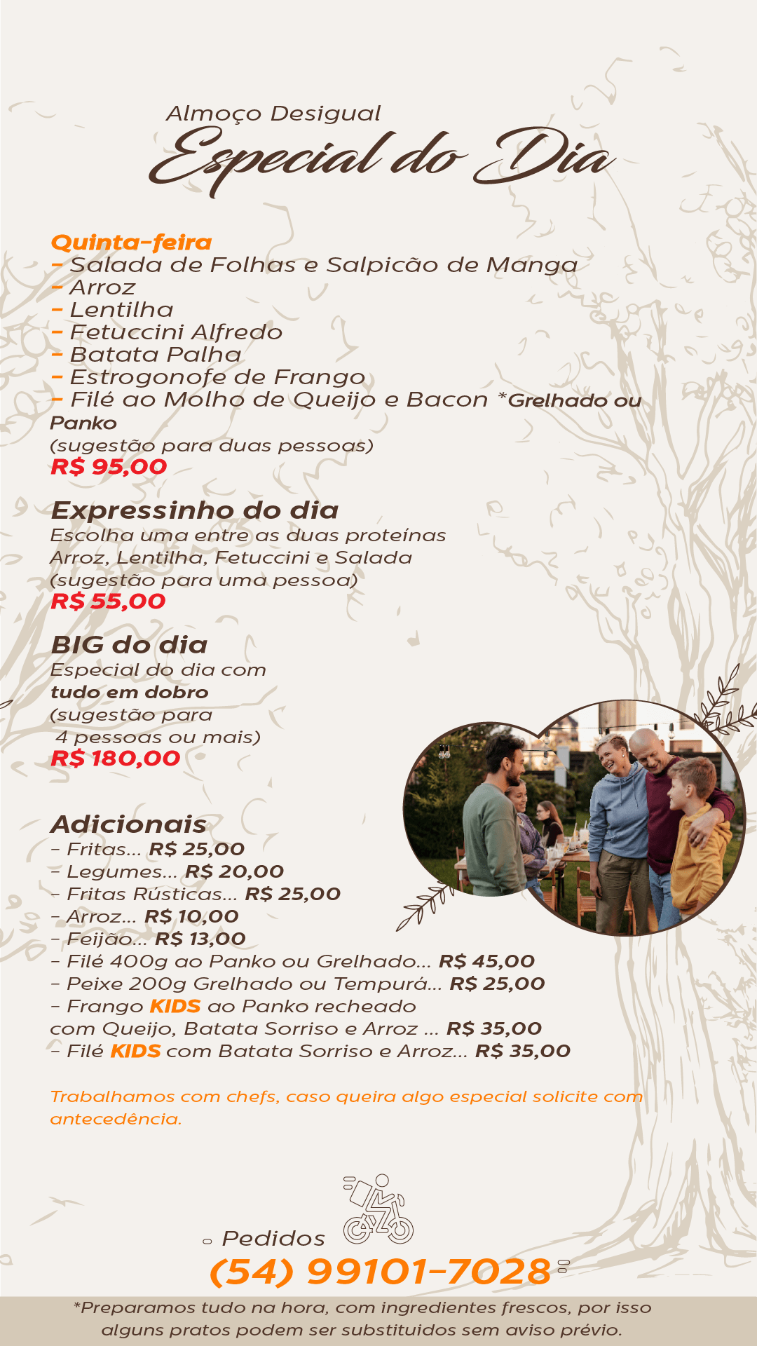 Confira o cardápio do delivery de quinta-feira da Casa do Bosque.