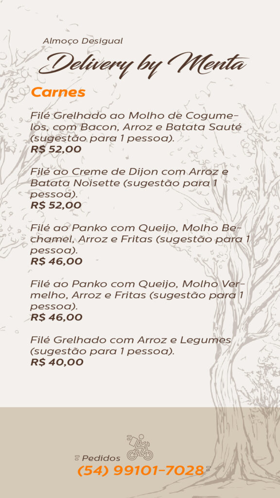 Confira o cardápio semanal do delivery da Casa do Bosque e aprove.