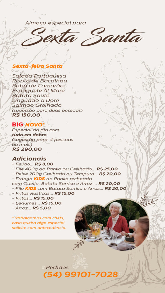 Cardápio especial da Sexta-feira Santa para Casa do Bosque