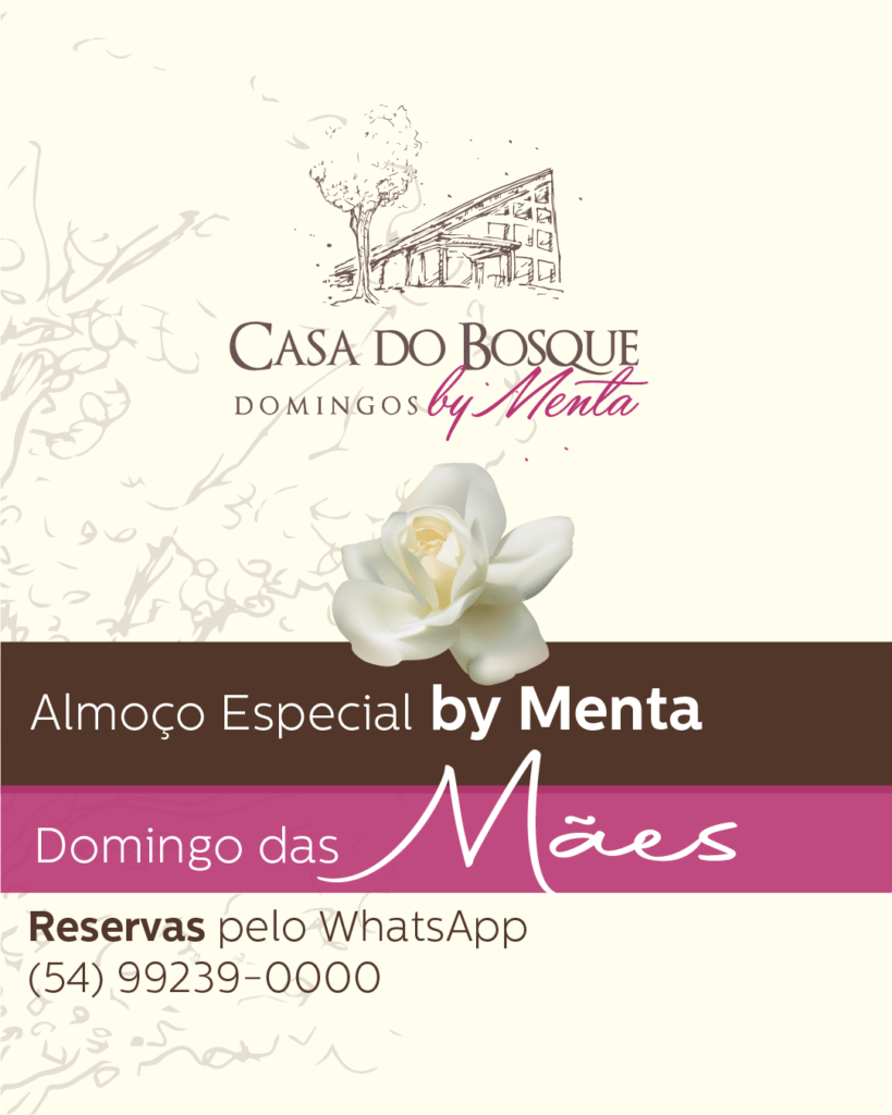 Domingo das Mães na Casa do Bosque. Neste domingo, 14/05, serviremos um almoço diferente para as Mães. ❤️