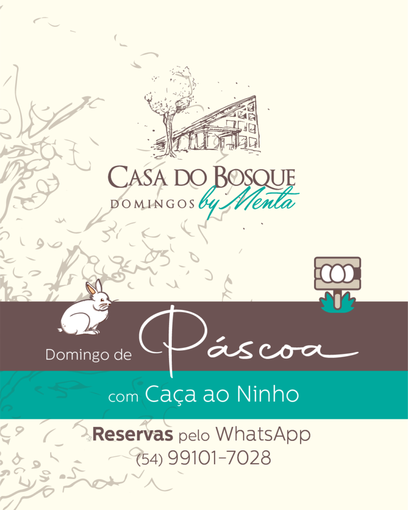 Domingo de Páscoa, 🐇 dia 09/04 tem almoço especial com caça ao Ninho na Casa do Bosque.