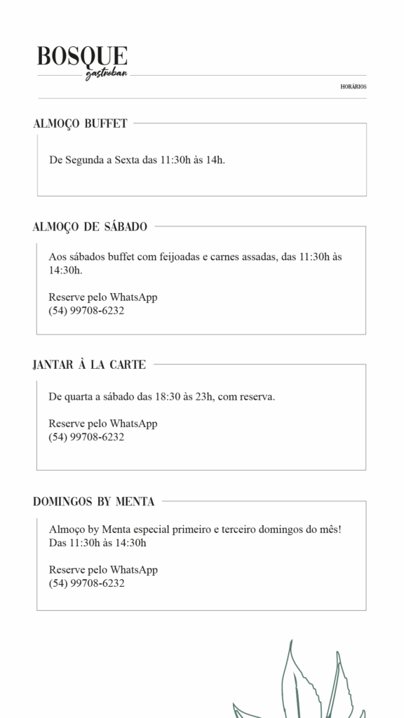 Bosque Gastrobar – Horários