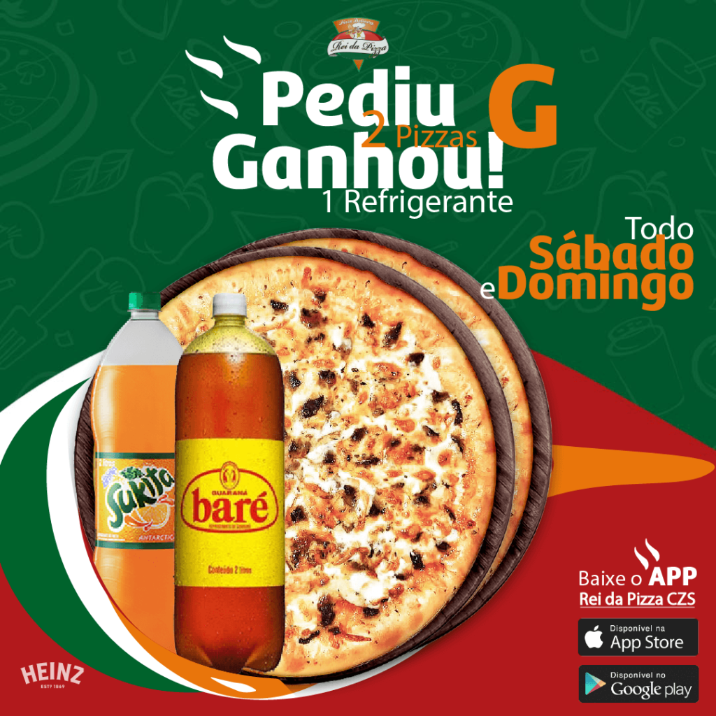 Final de semana com #promo , pediu 2 pizzas G, ganhou 1 Refrigerante 2L !
