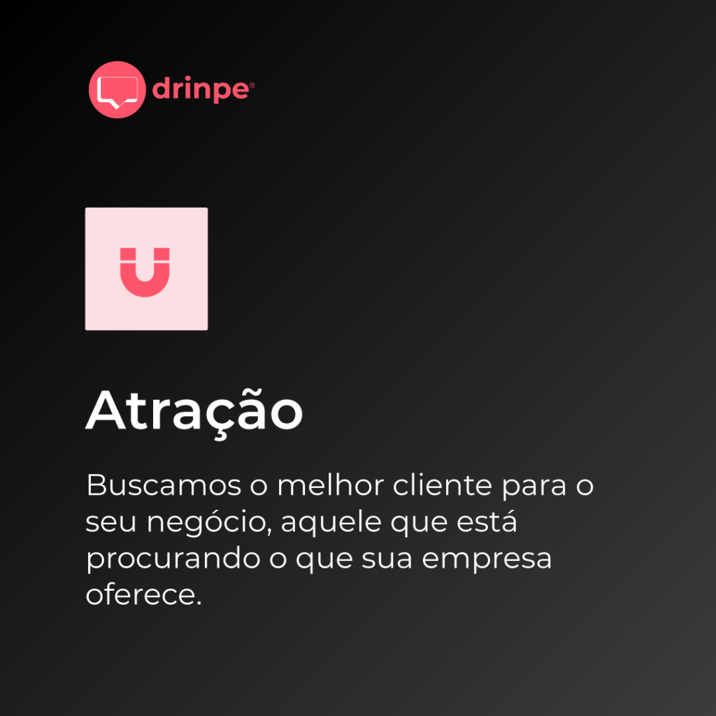 Para potencializar suas vendas de forma rápida e eficaz desenvolvemos a estratégia de gestão da Drinpe: Atração, Conexão e Conversão.